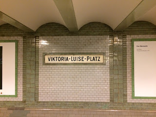 Each station has it's own personality. They are spotlessly clean. Some are larger than others because several rails may connect, such as Potsdammer Platz or Stadtmitte. Some are small, like Spittelmarkt or our own little Viktoria Luise Platz. The walls of each station are used like a canvas upon which each station is individually and differently decorated, some having a historical motif, featuring posters of trams and U-Bahn rail cars of the past (the Berlin Untergrundbahn, or 'U-Bahn', was installed in 1900!). Others feature Theatre posters, some show the sights, the "Sehenswurdigkeiten" of that particular Borough. Like New York, Berlin is divided into individual Boroughs, each having a personality of their own.